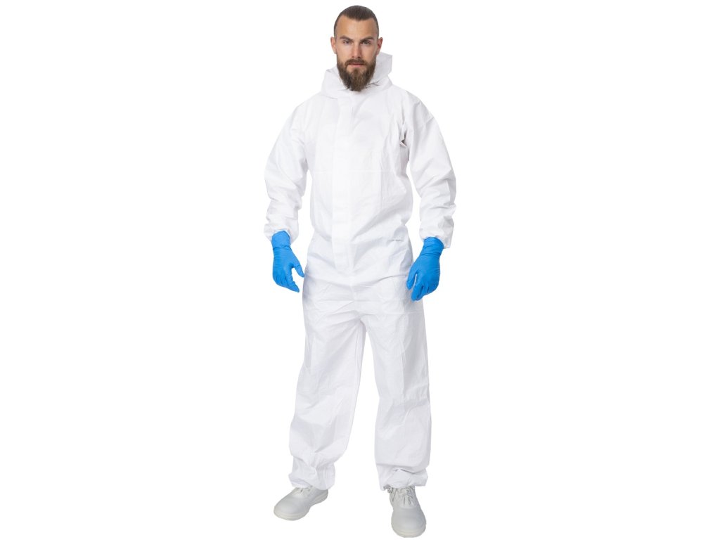 - biely jednorazový ochranný overal (netkaný polyetylén)