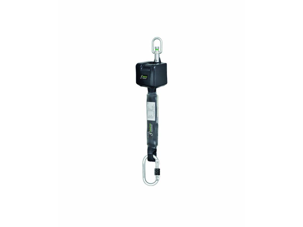 - zaťahovací zachytávač pádu s oceľovou karabinou