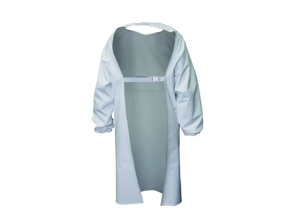 - elastické manžety, zapínanie vzadu na pracku, zosilnenie materiálu v hrudnej časti