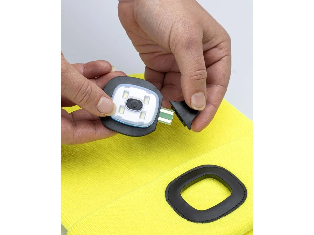 - pletená zimná čiapka so snímateľným LED svietidlom